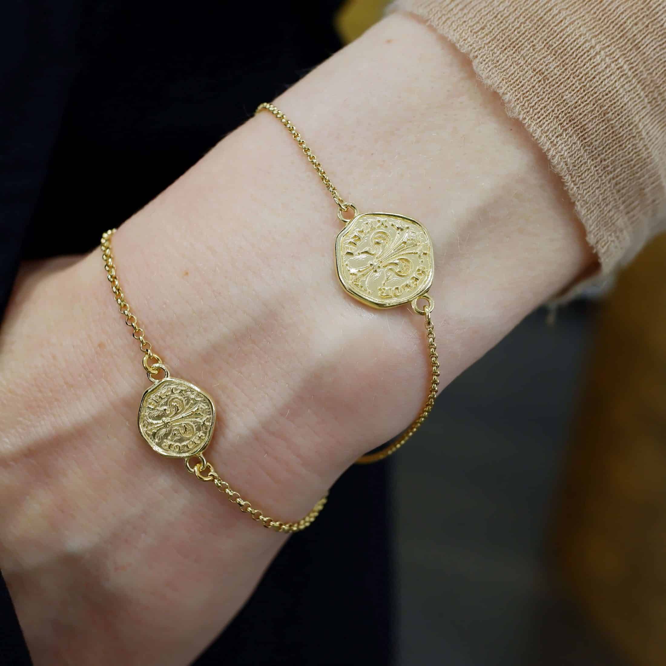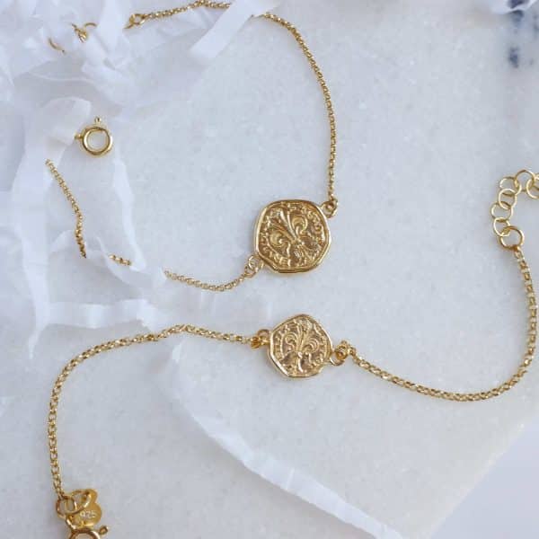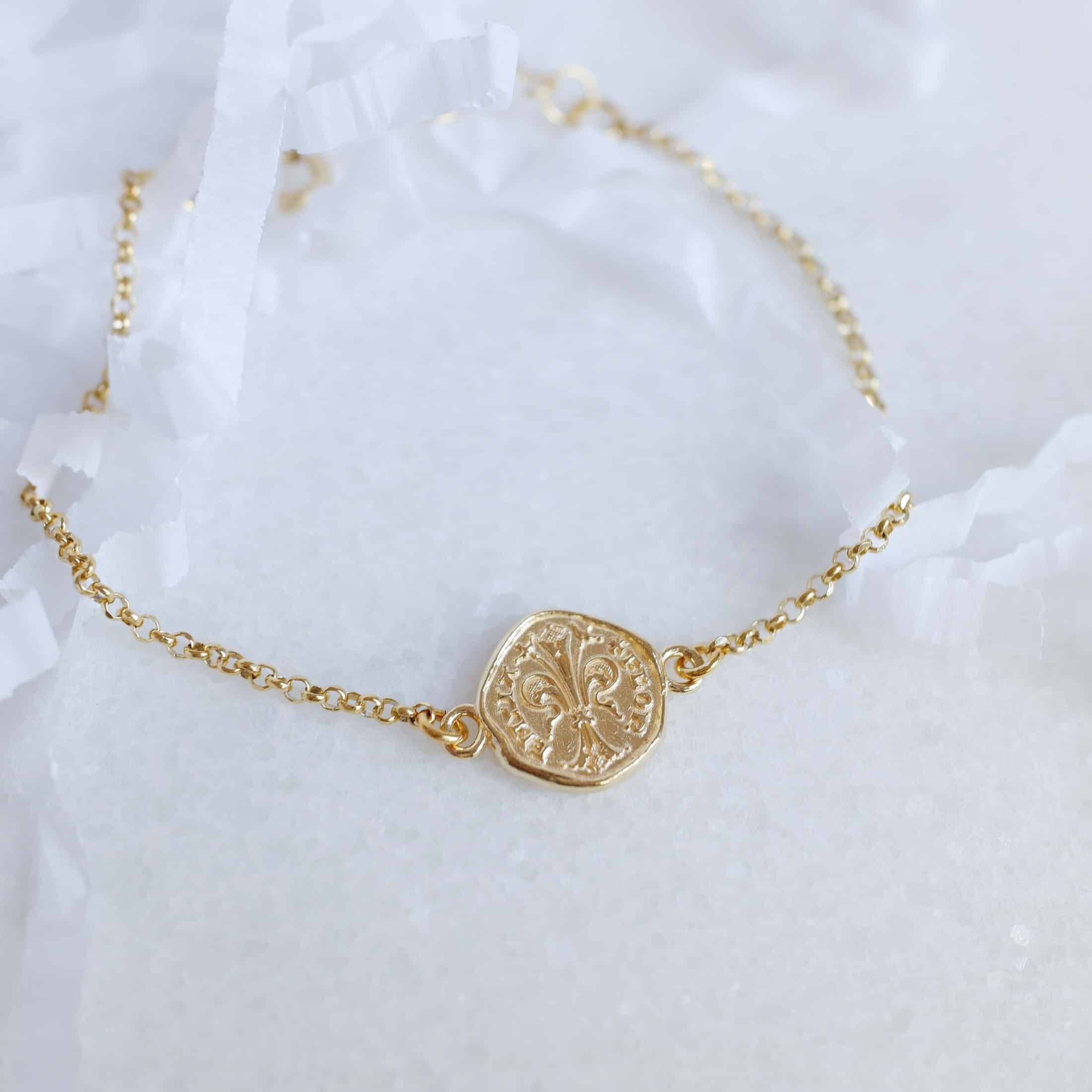 Questo bracciale da donna, realizzato con finiture in placcatura oro e rodio anallergico, racchiude tutta la bellezza e il significato del celebre Fiorino fiorentino.