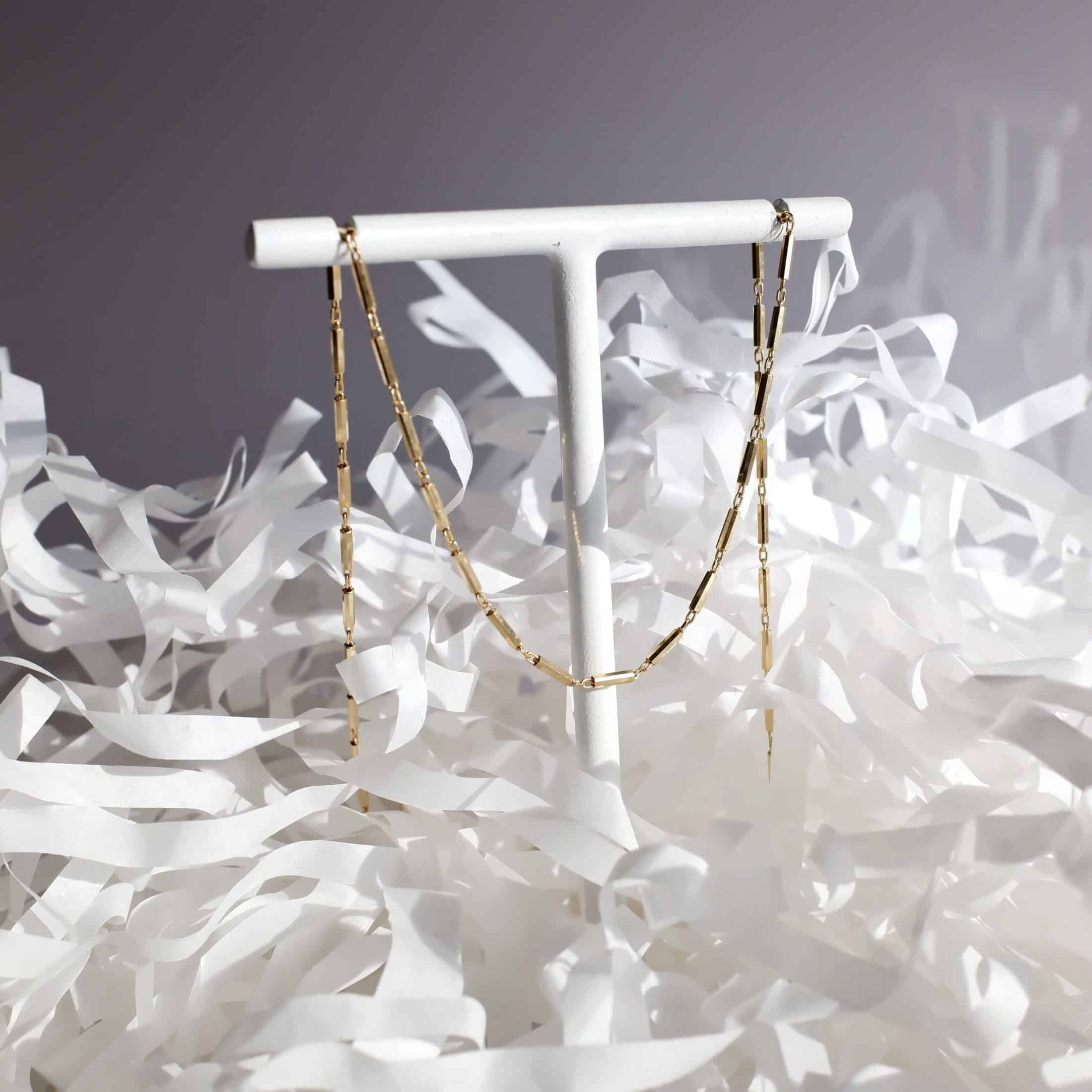 Le sue maglie allungate, sottili e finemente intrecciate, creano un gioco di luci delicato che dona al gioiello un’eleganza discreta ma d’impatto. La superficie liscia e lucida esalta la brillantezza naturale del metallo, rendendola un accessorio versatile e sofisticato.Â
