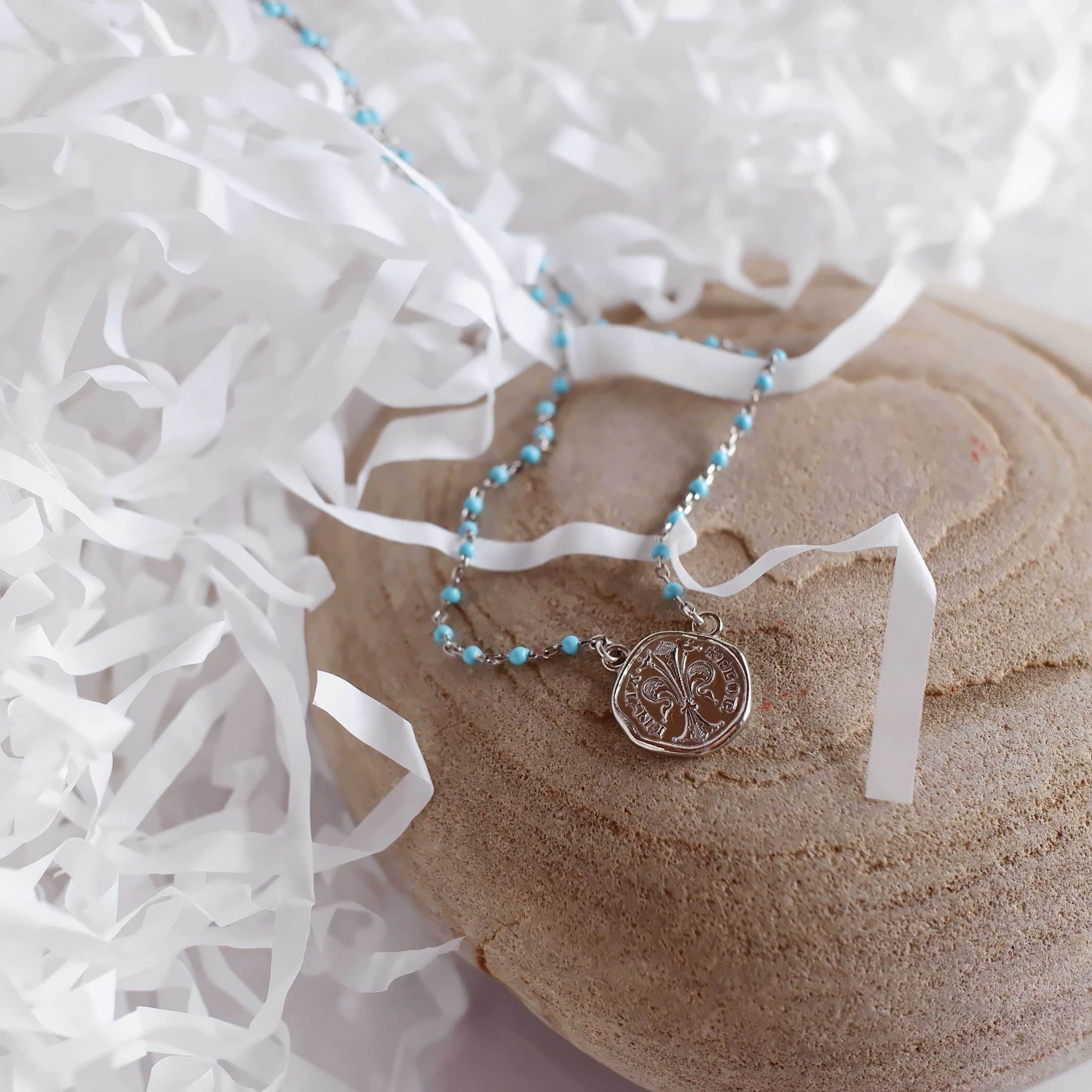 Unico nel suo genere, questo gioiello è un tributo al leggendario Fiorino fiorentino, il celebre simbolo di Firenze, e rappresenta l’armonia perfetta tra tradizione e innovazione. Il nostro design esclusivo, riproduce il Fiorino in argento su entrambi i lati, con una precisione e un dettaglio straordinario che raccontano una storia secolare. La catena, con delicati pallini smaltati in turchese, è una vera e propria novità che aggiunge freschezza e modernità al fascino storico del ciondolo.