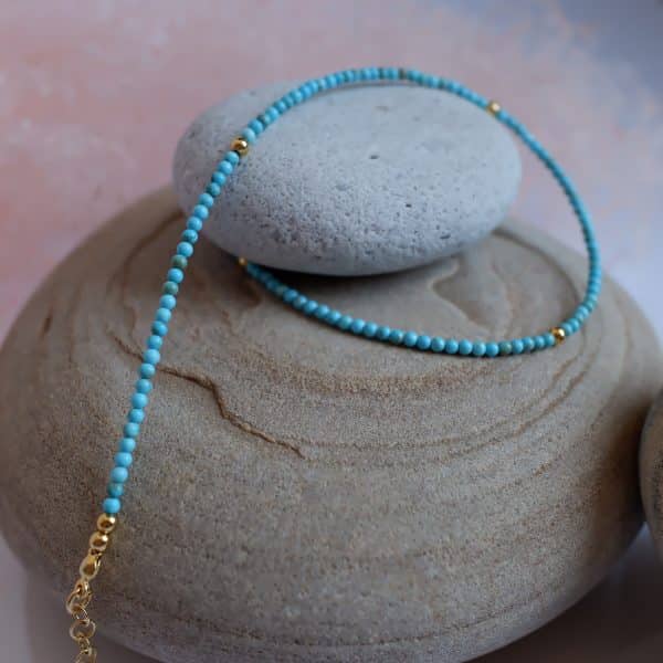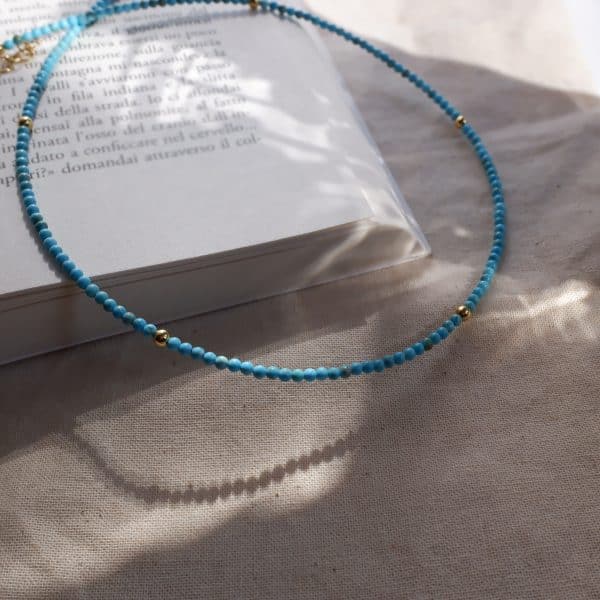 Il girocollo di Aulite con pallini in argento placcato oro è un gioiello che unisce l’eleganza della pietra naturale con la raffinatezza dei metalli preziosi. Questo pezzo sofisticato è perfetto per chi desidera un accessorio distintivo che aggiunge un tocco di classe a qualsiasi outfit.
