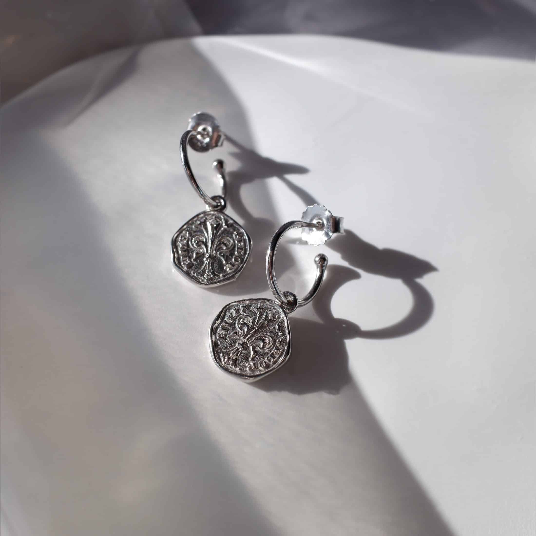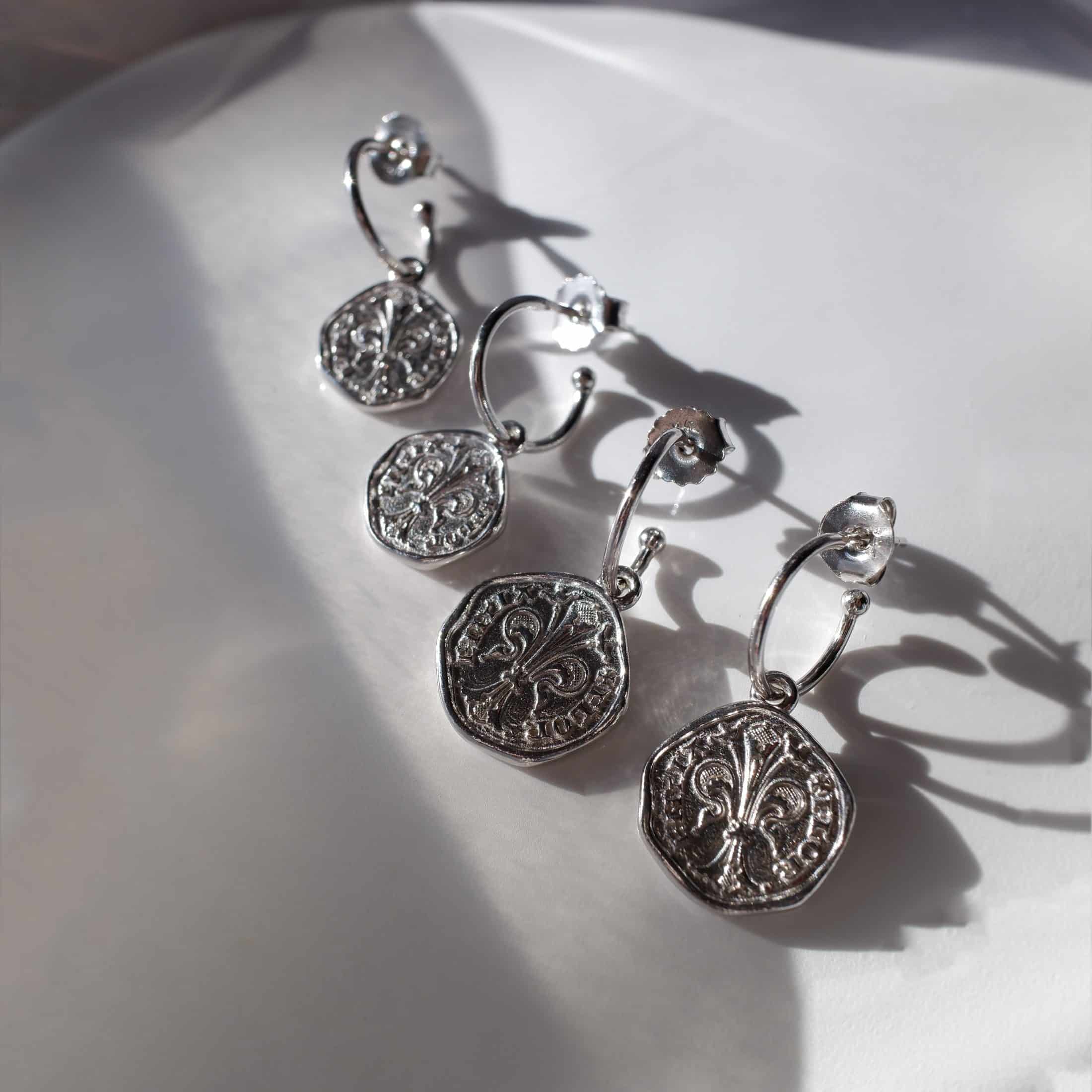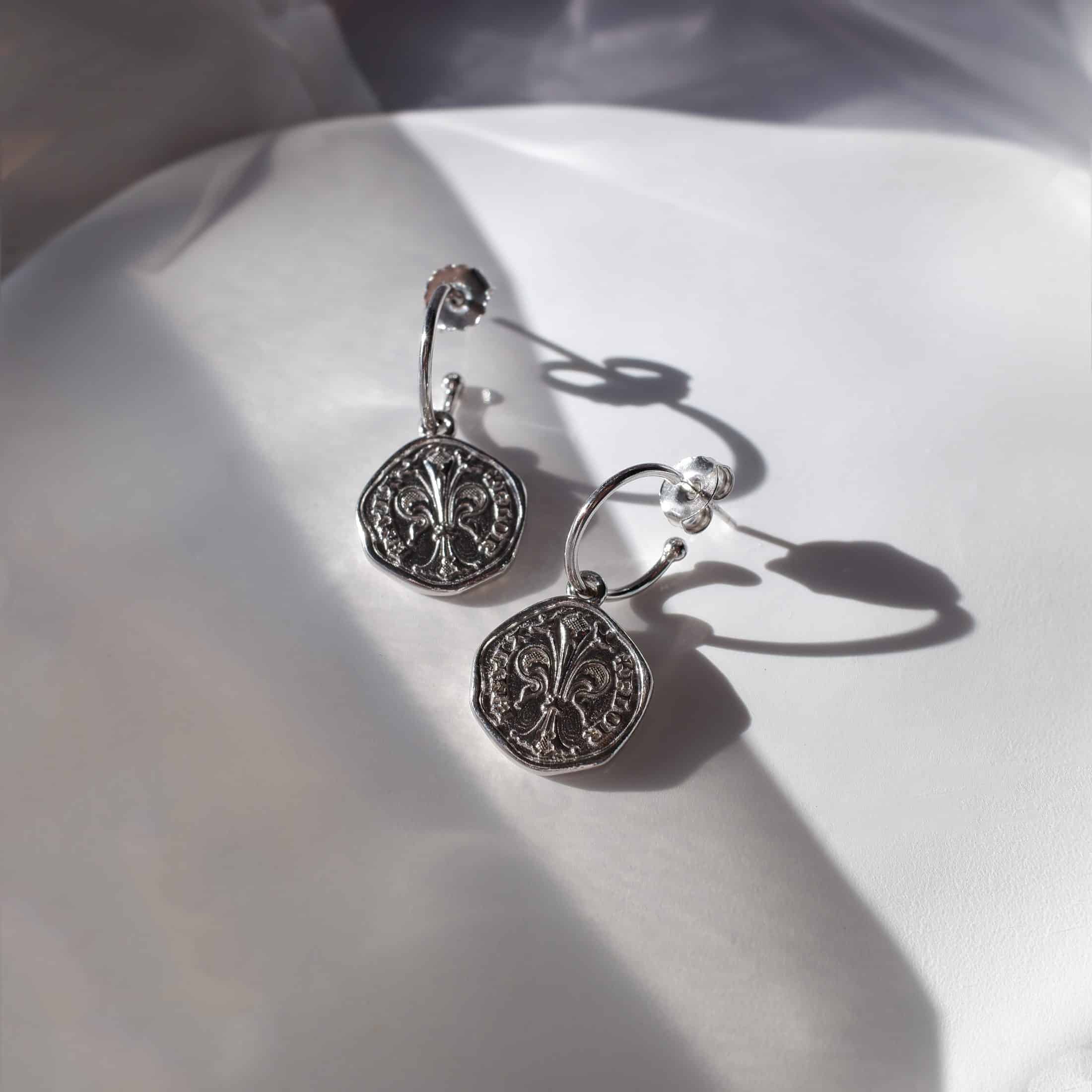 Gli orecchini pendenti con Fiorino rimovibile su semicerchio rappresentano un connubio perfetto tra tradizione e modernità. Questi orecchini sono composti da un semicerchio di argento 925 o argento 925 placcato oro 18 carati, da cui pendono due Fiorini.