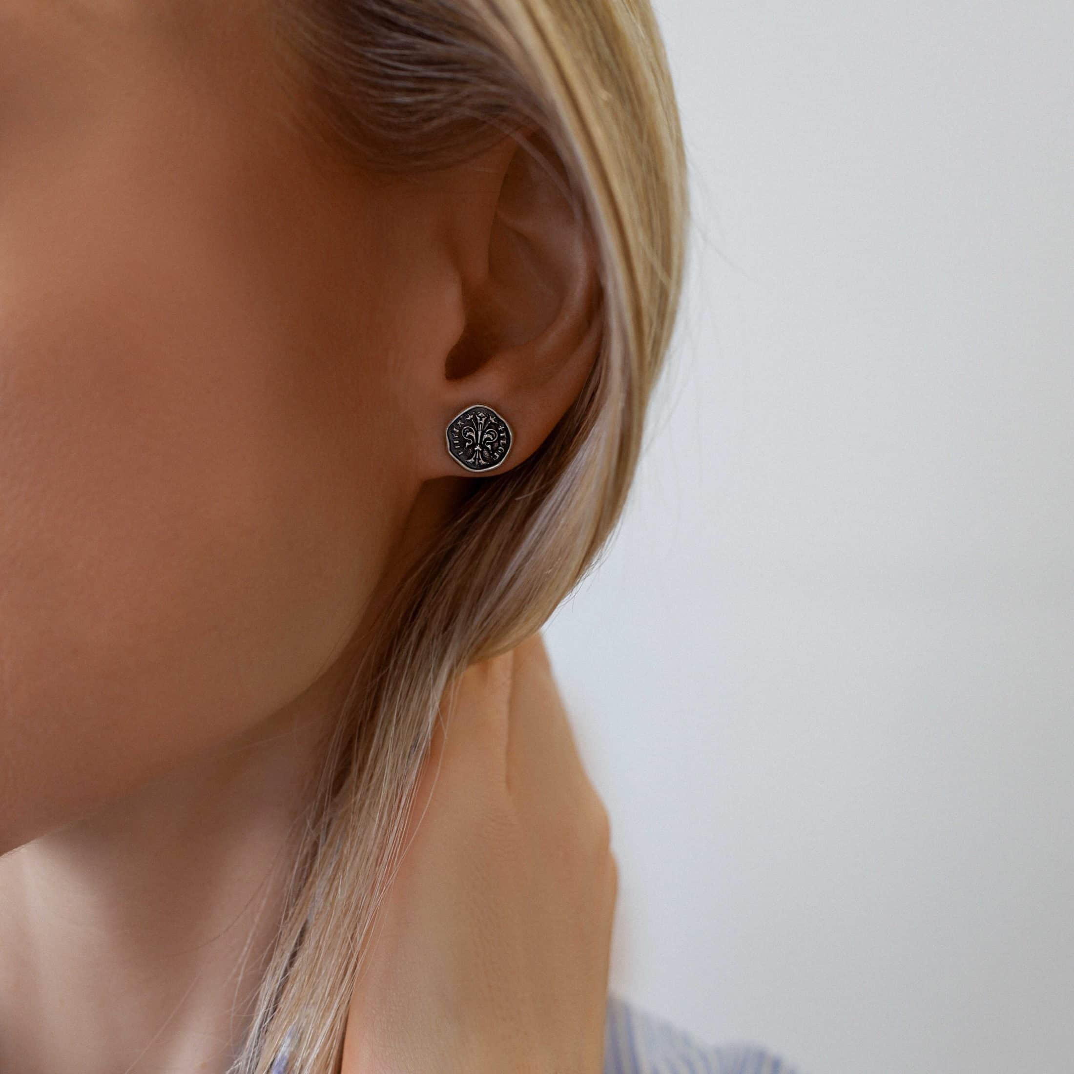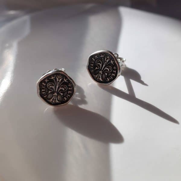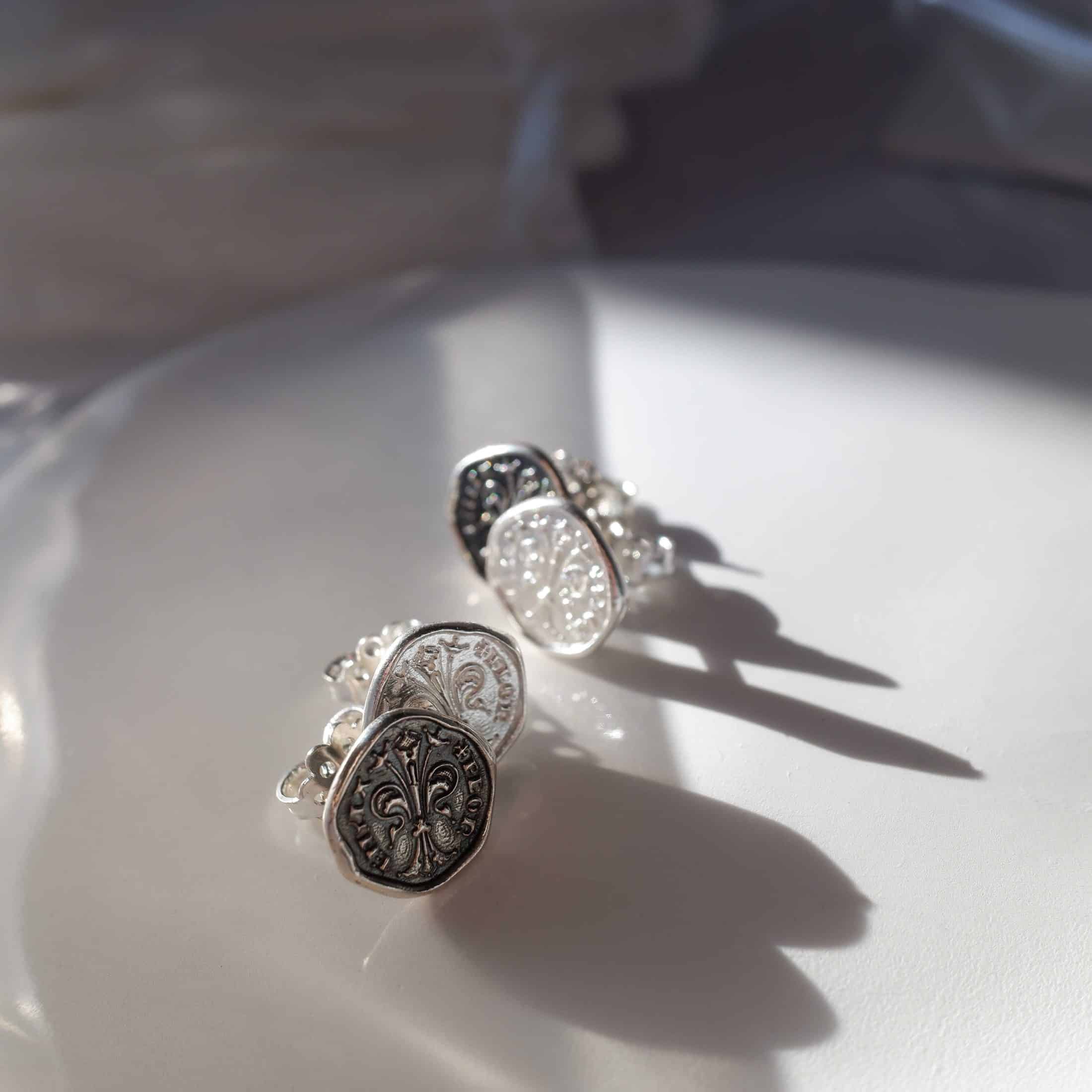 Questi eleganti orecchini a lobo reinterpretano il leggendario Fiorino Fiorentino in una chiave contemporanea, fondendo tradizione e design moderno. Realizzati inargento rodiato e argento brunito, ogni dettaglio racconta il prestigio e la storia di una delle monete più iconiche della Firenze medievale.